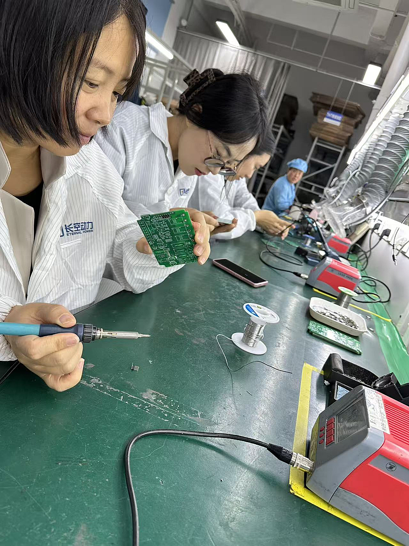 为更直观理解焊接环节的重要性,生产负责人特别强调:“回流焊接是SMT产线的‘心脏’,焊接质量直接关系到电路的导通性、稳定性,甚至整机的使用寿命。”理论学习后,教师们还亲自动手,使用电烙铁在PCB板上进行插件焊接操作,在实践中感受焊接温度、时间、焊锡量对焊点质量的影响,进一步深化了对“工艺细节决定产品质量”的认知。