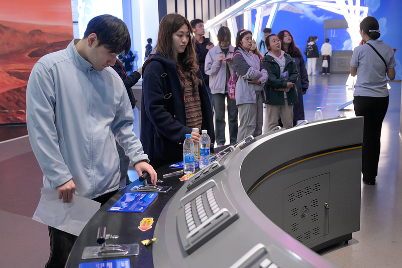 “创梦工场”的体验环节将现场气氛推向高潮。同学们亲自动手操作各类交互设备,在实践中验证想法、在试错中寻找答案,完成了从观察到实践的跨越。