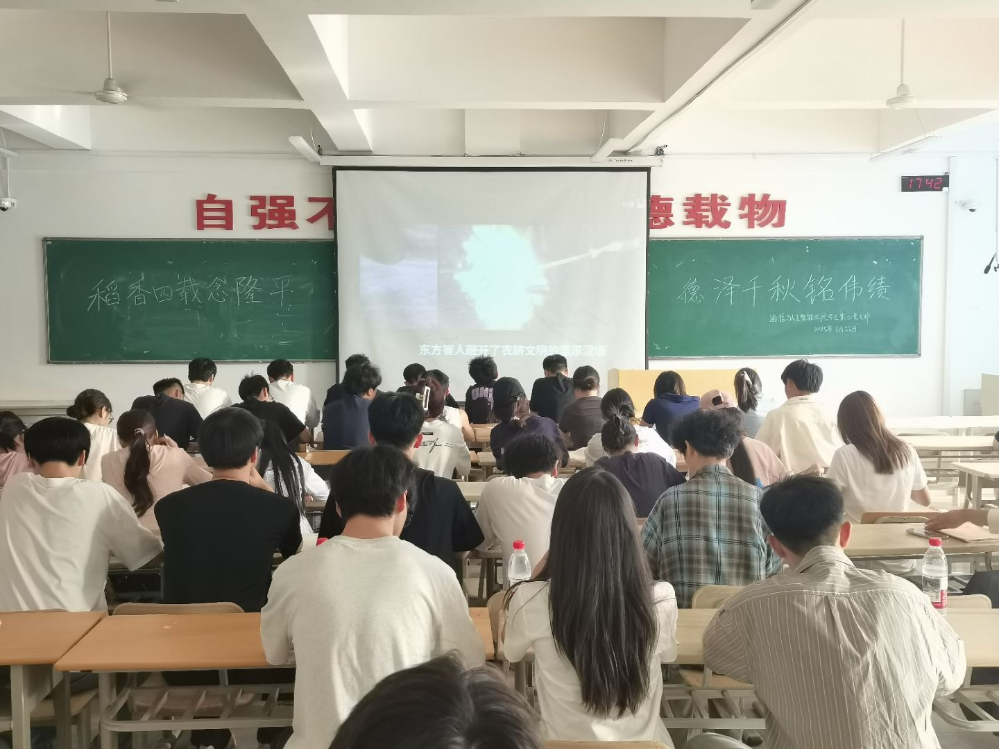 会议伊始,全体人员起立低头默哀一分钟,以庄重的方式表达对袁隆平院士的深切缅怀与崇高敬意。默哀结束后,大家观看了精心剪辑的纪录片,纪录片生动展现了袁隆平院士波澜壮阔的一生:年少立下“让所有人远离饥饿” 的宏愿,几十年扎根田间地头科研攻关,无私分享杂交水稻技术、为全球粮食安全作贡献。积极分子们全神贯注观看,不少人被袁老事迹深深打动