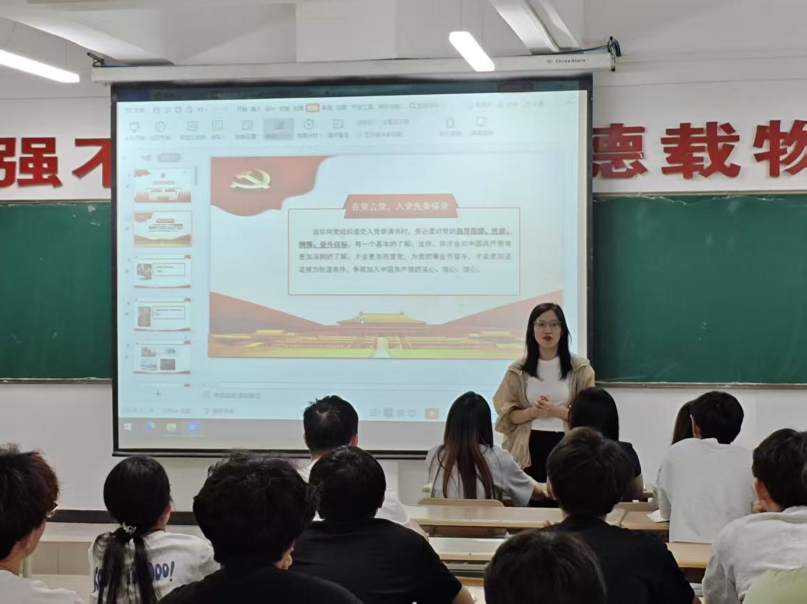 在讲解习近平新时代中国特色社会主义思想时,郭老师重点分析了这一思想的时代背景、核心要义与历史地位。她结合党的二十大报告,指出:“习近平新时代中国特色社会主义思想是当代中国马克思主义、二十一世纪马克思主义,是中华文化和中国精神的时代精华,实现了马克思主义中国化时代化新的飞跃。”为帮助学员更好地理解理论与实践的结合,以脱贫攻坚、科技创新、生态治理等领域的典型案例为例,解读党的指导思想如何引领中国取得历史性成就。 针对青年学生的特点,郭老师特别强调了习近平总书记对青年的殷切期望。她引用总书记“青年强,则国家强”的论述,鼓励学员:“作为入党积极分子,要主动用党的创新理论武装头脑,将个人理想融入‘国之大者’,在服务国家战略中实现人生价值。”