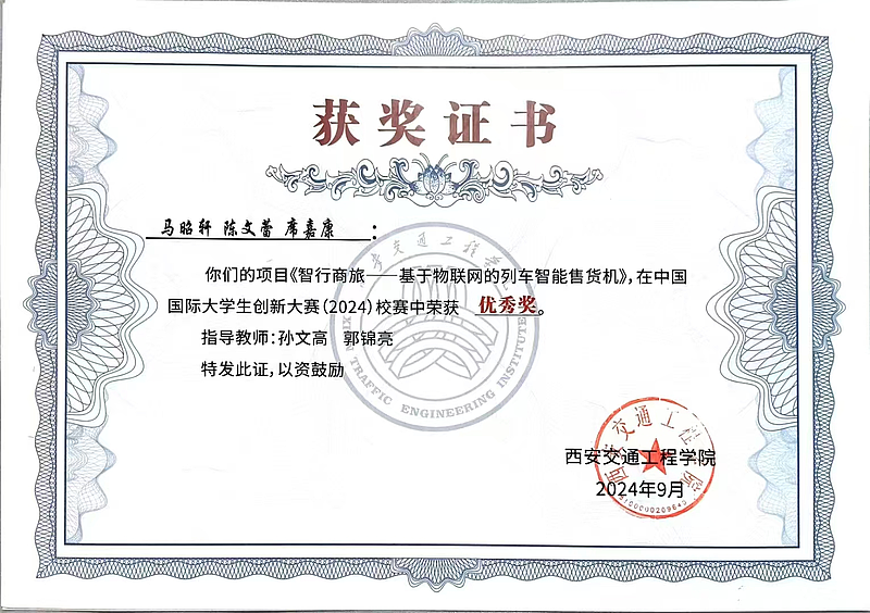 中国国际大学生创新大赛校赛优秀奖(2024)