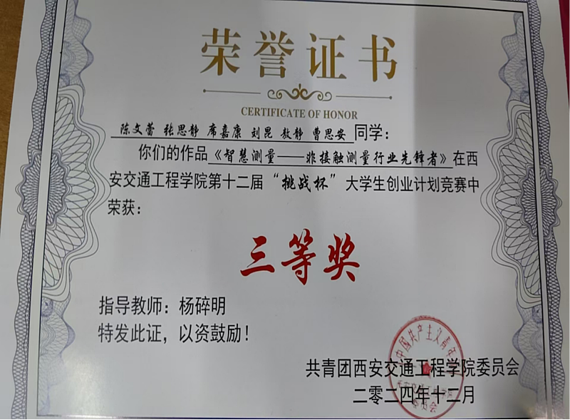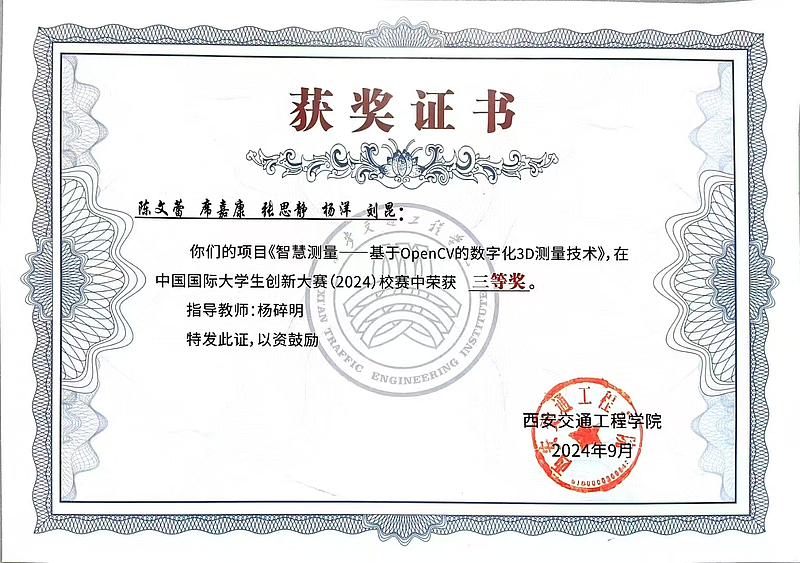 中国国际大学生创新大赛校赛三等奖(2024)