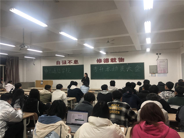 ——考前辅导,动员报考。一是合理安排复习时间,讲究学习方法,提高学习效率。二是劳逸结合,调节好生活作息。三是有信心,戒骄戒躁,严格要求自己。四是营造学习氛围,共同进步。辅导员老师号召同学们珍惜专升本机会,制定有效学习计划,采用科学学习方法,提高学习效率,考出优异的成绩,开启人生更加辉煌的篇章。