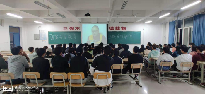 ——观看“国家安全教育日”宣传片。在第6个全民国家安全教育日来临之际,为增强学生国家安全意识,4月14日该院组织学生在2-502观看了“重温红色党史,保卫国家安全”的影片。老师通过法律法规、案例和视频素材结合的方式,讲解了当前境外间谍渗透窃取信息的方式方法、如何分辨境外间谍、遇到间谍该怎么办以及维护国家安全个人能做什么等方面内容。学生们纷纷表示,要认真学习领会国家安全知识,形成维护国家安全的法治观念和行动自觉。