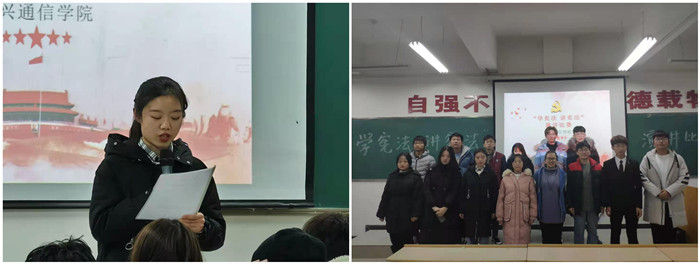 ——举行演讲比赛。“知宪法于心,守宪法于行”,为了更好地贯彻落实宪法精神该院于12月10日下午开展了“学宪法 讲宪法”演讲比赛。在选手们慷慨激昂的陈述中,宪法不再是冷冰冰的条条框框,而是生动形象地展现在同学们眼中。本次活动让同学们认识到宪法意识的培养对于自己人格健全的重要意义所在,使宪法意识真正成为大学生人格心理结构中必不可少的主体意识,并为学院宪法宣传做出贡献。