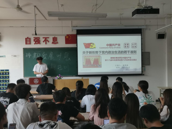 ——讲党课党员说党史。为认真贯彻落实《中国共产党发展党员工作细则》要求,进一步做好发展对象的培养教育,确保党员发展质量,6月8日至6月10日,该院学生党支部组织开展24期发展对象短期集中培训。该院学生党支部书记郭锦亮同志从勉励发展对象加强党性锤炼,端正入党动机、提高能力素质。同时强调了本次培训的纪律要求,并希望学员们学以致用,在今后的工作中树立党员形象、发挥模范带头作用,为我校本科教学评估做贡献。学生党支部党小组成员姚鹏、张明磊、吴梓伟担任本次培训的主讲人。此次短期培训是发展对象迈向党组织重要的一步,也是思想升华的重要一步,加深了发展对象对党的理论理解,有利于发展对象树立正确的理论观念,切实提高党员发展质量。