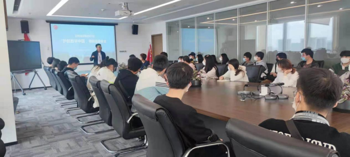 进入西安启明星辰信息科技有限公司后,由西安启明星辰信息科技有限公司网络空间安全学院市场总监冯德胜带领各位同学分别参观了公司办公区及启明星辰安全运营中心,并在会议室为各位同学讲述了大数据网络安全相关知识及相关的就业前景进行讲授及分析。