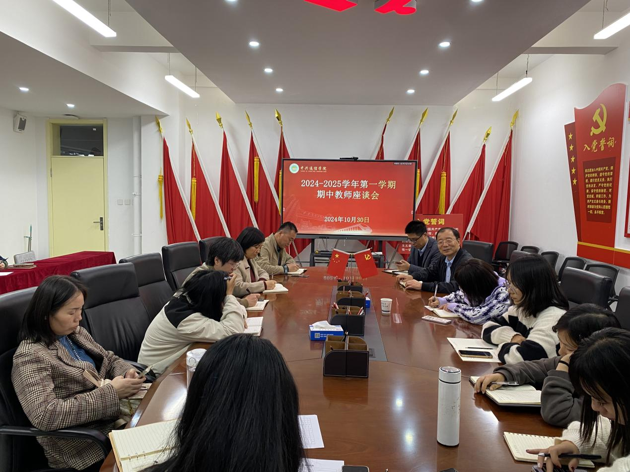 为全面了解本学期课堂教学实际情况,广泛听取意见和建议,及时发现存在问题、研究解决办法,促进教学质量稳步提高,10月30日中兴通信学院于党员活动室组织召开了期中教学检查教师座谈会。学校质评处处长张小菊参加座谈,出席会议的还有院长李乃乾,党委书记兼副院长张斌,副院长王冠军以及各个教研室教师代表,座谈会由副院长孙文高主持。