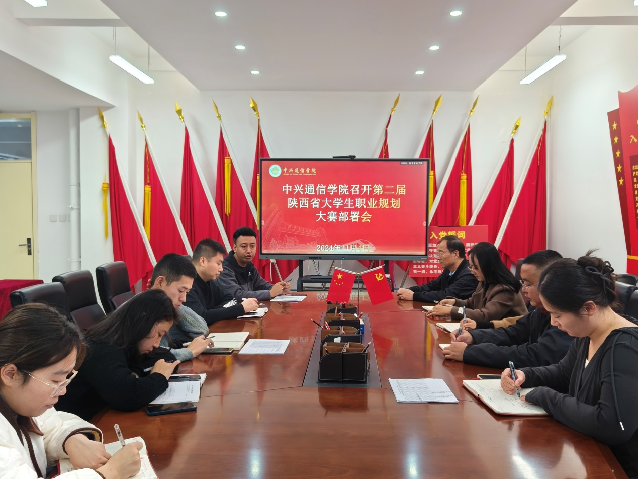 2024年11月4日,中兴通信学院在学院会议室召开第二届陕西省大学生职业规划大赛部署会。学院院长李乃乾、学院党委书记张斌及全体辅导员参加此次会议。