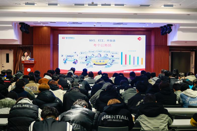 会上,华图教育的讲师首先对现阶段大学生的就业形势进行了全面而深入的剖析。随着高校毕业生数量的逐年增加,就业市场竞争愈发激烈,考公考编成为众多学子追求稳定职业的重要途径。讲师通过详实的数据和案例,直观地展示了国考、省考及事业编考试的竞争比例与招录人数变化趋势,让同学们对当前的考情现状有了清晰的认识。