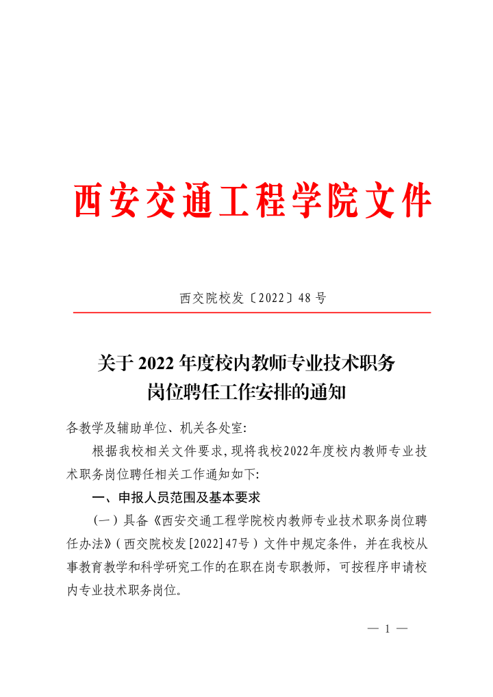 西交院校发[2022]48号(关于2022年度校内教师专业技术职务岗位聘任工作安排的通知)