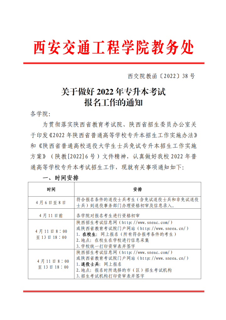 西交院教函〔2022〕38号关于做好2022年专升本考试报名工作的通知