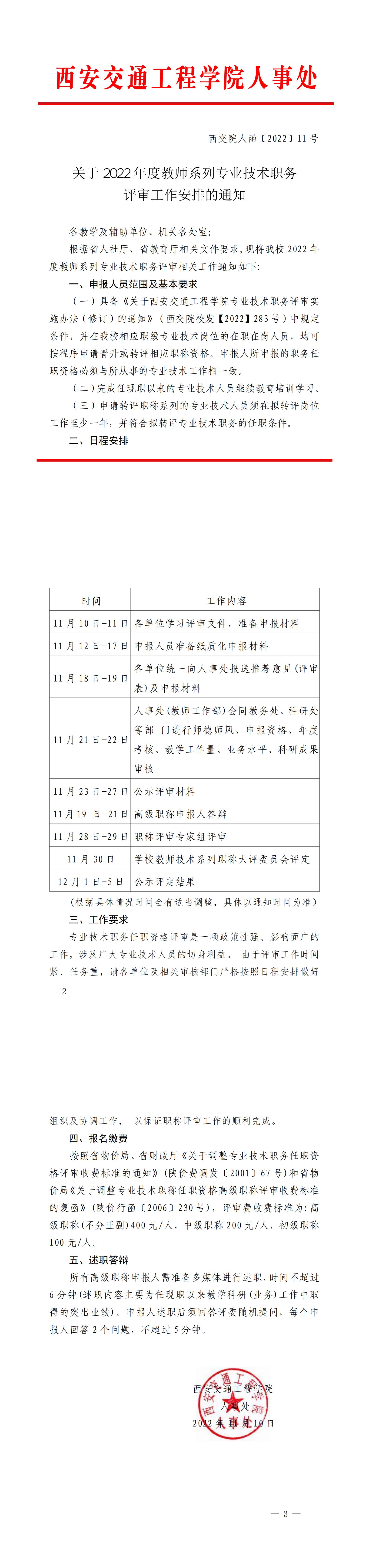 西交院人函〔2022〕11 号 关于 2022 年度教师系列专业技术职务 评审工作安排的通知