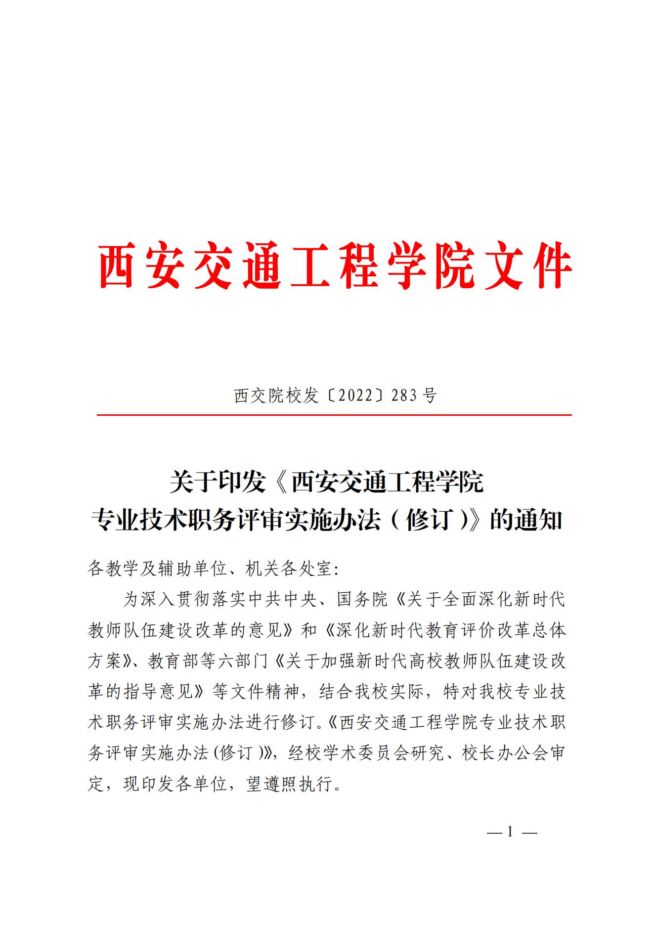 西交院校发〔2022〕283 号 关于印发《伟德国际1946bv 专业技术职务评审实施办法(修订)》的通知