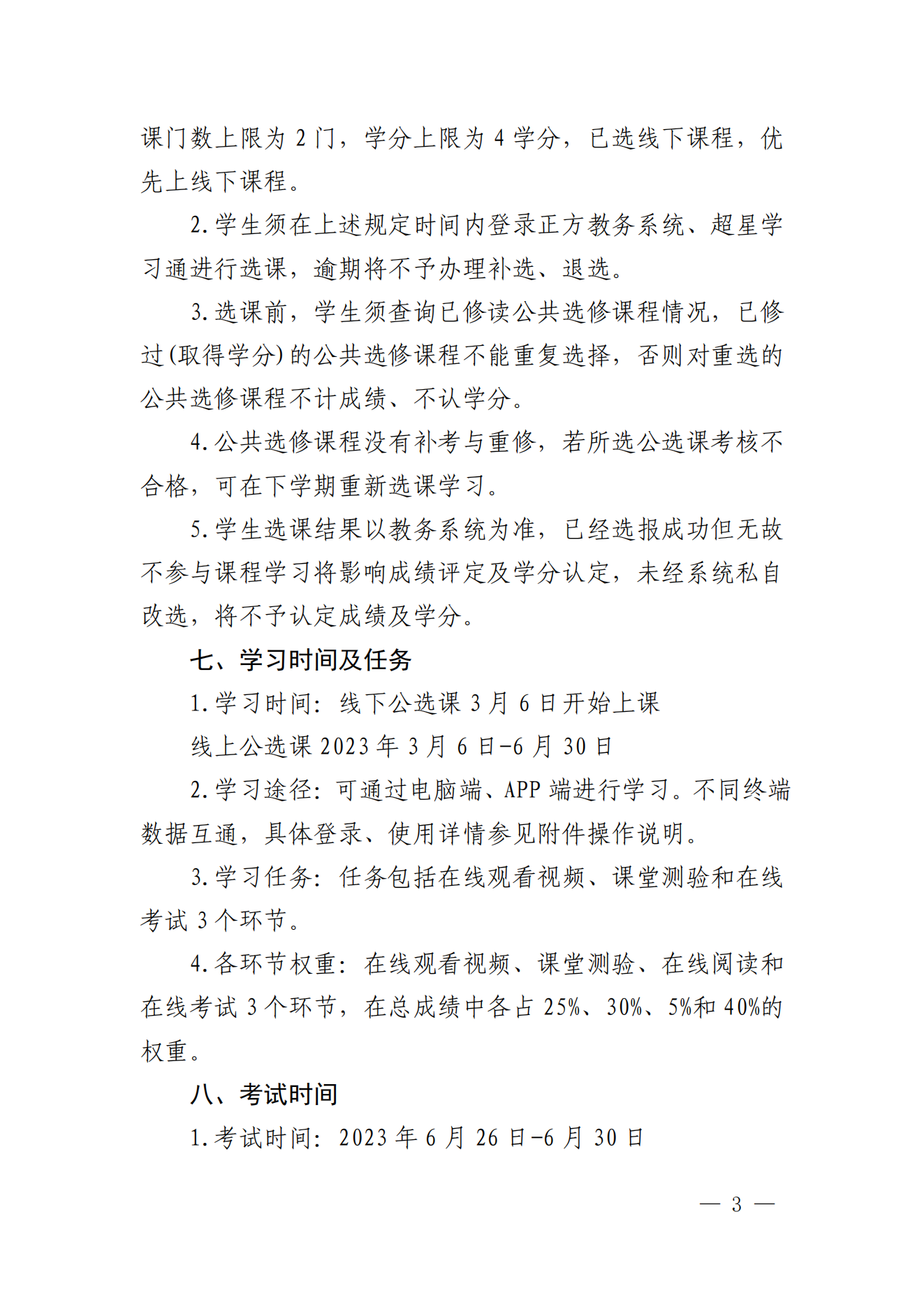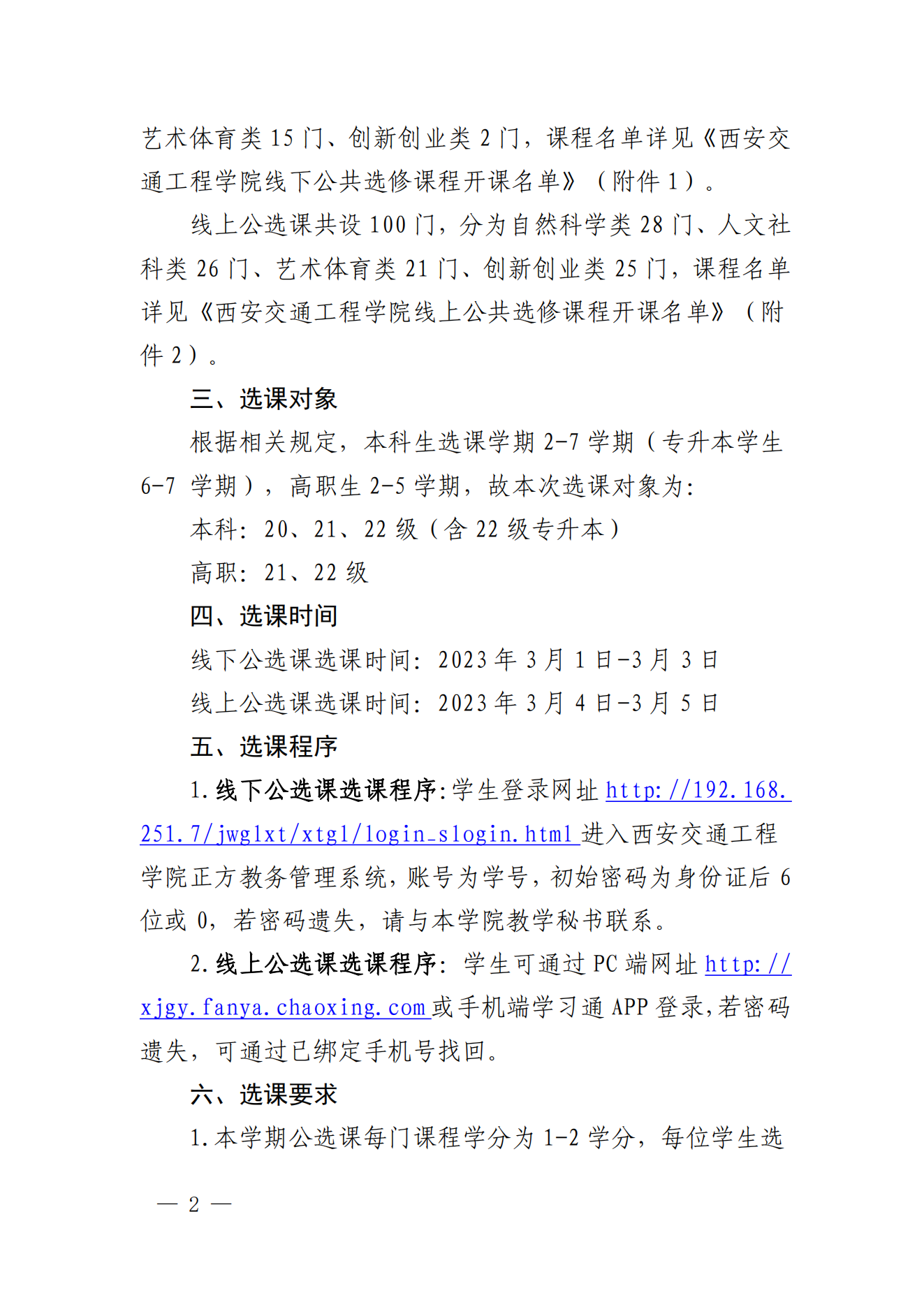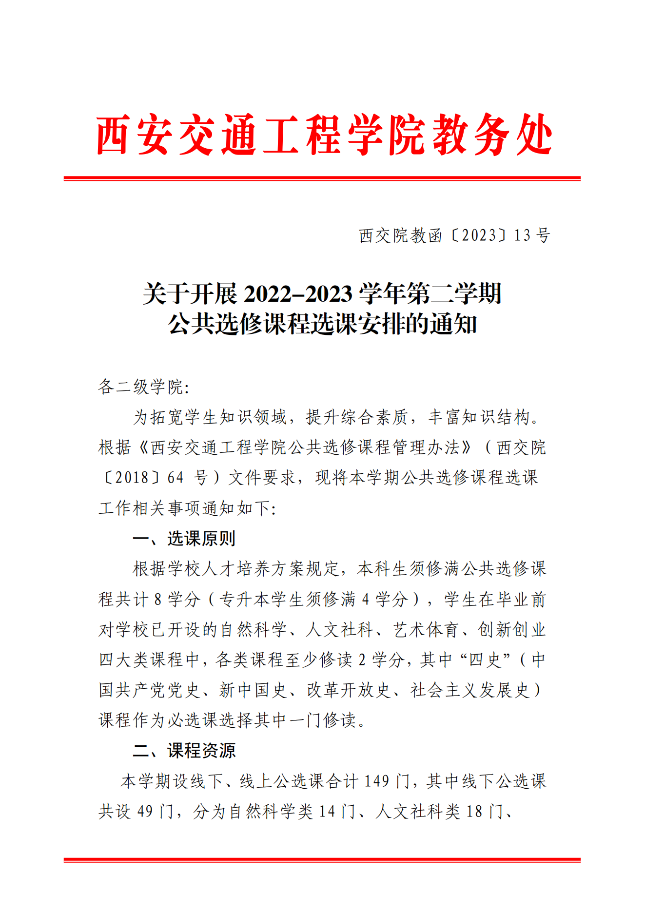 西交院教函〔2023〕13号关于开展2022-2023学年第二学期公共选修课程选课安排的通知