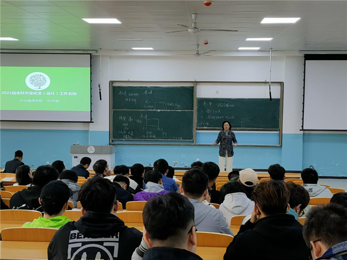 近日,为进一步推动中兴通信学院2021届本科通信工程、物联网工程两个专业毕业设计工作的开展,促进教师和学生不断地提高本科毕业设计质量和水平,该院在D102阶梯教室举行了“2021届毕业生毕业论文论文启动仪式”。会上,副院长席晓冰强调毕业设计要将跨文化能力和创新思维能力相结合,综合大学所学知识,认真完成本次毕业设计。