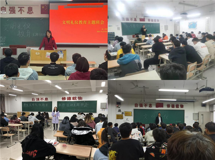 ——召开主题班会。该院于3月14日组织各班相继开展文明礼仪主题班会,倡导学生遵守文明规范,利用黑板报、宣传栏等各种形式对学生进行激励引导,着力搞好宣传教育工作,使同学们能够自觉践行文明礼仪,让文明用语成为习惯,营造良好的校风,在今后的学习与生活中做到言行举止文明规范。