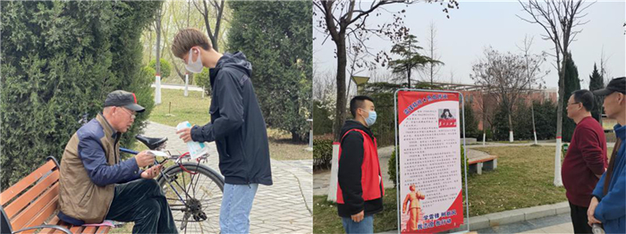 ——开展志愿服务活动。为弘扬雷锋精神,响应我校“青春志愿眏渼陂,绿水青山最鄠邑”的号召,3月5日下午该院组织开展“弘扬雷锋精神,践行绿色公益”志愿服务活动。活动现场同学们一起重温了雷锋生平事迹,也向校外的民众宣讲雷锋事迹,给叔叔阿姨爷爷奶奶们送去了爱心口罩,讲述关于雷锋同志的故事,共同践行”不怕苦、不怕累,干一行、爱一行、钻一行的“螺丝钉精神” 、“挤”和“钻”的钉子精神,努力学习基本理论,刻苦钻研学习,练就为人民服务的本领,为社会主义建设添砖加瓦。他们表示作为青年志愿者更应发挥宣传引导作用,树立先进典型,传递社会正能量,营造浓厚氛围。