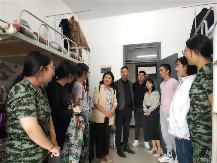 走访过程中,李萍院长与新生进行了亲切交谈,鼓励大家尽快适应新环境,学习和生活中有困难要及时反映,学校会全力帮助解决。希望他们能够尽早的熟悉校园环境,照顾好自己,一句句暖心的问候让同学们感受到家的温暖。