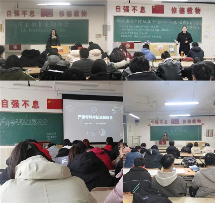 ——各班开展“诚信考试”主题班会。为端正考风考纪,中兴通信学院各班辅导员召开了“期末诚信考试”主题班会。此次主题班会旨在让学生们进一步明确严肃考风考纪的重要性及学校对于违规违纪行为持零容忍态度。辅导员在主题班会上针对不同专业的课程特点,阐释了课程期末考试的目的意义所在,强调要求重在日常学习和注重学习方法。