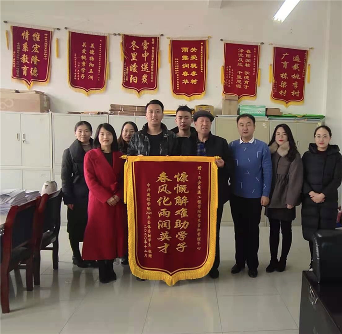 锦旗是一种荣誉,是学生对老师倾心付出的回馈;锦旗是一种认可,是学生对学校工作的充分肯定;锦旗更是一份心意,是学生对国家扶贫资助政策的感恩。