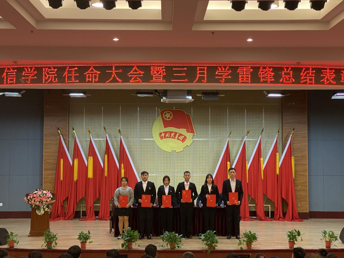 与会领导校团委副书记王小英、中兴通信学院副院长牛作领依次宣读了第六届团总支学生会干部任命名单和学雷锋活动月表彰名单并颁发证书。随后,学生干部代表张沛沛同学的发言中说到,学院对他们团队的肯定将为他们带来了一种更强的责任感与荣誉感,他们的集体精神因爱而存在,因责任而前进。学雷锋先进个人代表赵宇翔在发言中说,雷锋精神是平凡而伟大的,更因为教育出了一代又一代具有雷锋精神的人而永垂不朽,能支持他们前行的就是那份不畏艰难的意志和帮助有需要他人的决心。