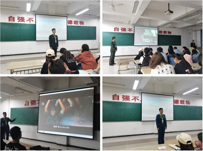 ——开展退伍学生征兵宣讲。4月23日,该院邀请四位退伍复学同学为大家谈了部队的生活和训练情况,军队的生活使自己收获了远大的理想信念,坚强的意识、良好的行为习惯和强健的身体素质。在部队培养的顽强作风和坚韧不拔的毅力,将会使我们终身受益。他们号召同学们积极应征入伍,到部队去锻炼自己,成就自己。激励学生们响应党和国家的号召,为实现强国梦、强军梦贡献青春力量!