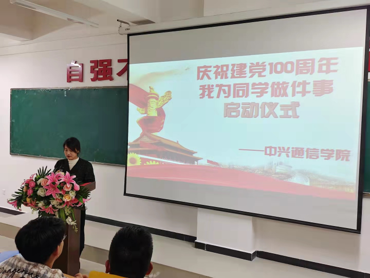 值此庆祝建党百年之际,为反映同学们的心声,想同学之所想,急同学之所急,解同学之所难,进一步聚焦同学所需,提升组织服务能力,切实为同学们办实事,中兴通信学院于10月14日在2-01举行“庆祝建党百年,我为同学做件事”活动启动仪式。本次启动仪式由中兴通信学院团总支书记贾晶主持,团总支学生会全体干部及学长导师团队参加此次启动仪式。