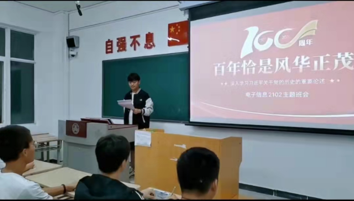 开展“请党放心,强国有我”主题宣讲。为深入学习习近平总书记在庆祝中国共产党成立100周年大会上的重要讲话精神,该院团总支书记贾晶于10月18日晚开展"请党放心,强国有我"专题宣讲,全体学生会干部参加。首先带领大家学习了习近平总书记在庆祝中国共产党成立100周年大会上的重要讲话精神,围绕习近平总书记“七一”重要讲话中对青年寄予的希望,回顾了百年来的中国青年运动,解读了习近平总书记强调的“增强做中国人的志气、骨气、底气”和“不负时代,不负韶华,不负党和人民的殷切期望!”。她鼓励学生从做好自己的本职工作做起,把握课堂,巩固专业知识并积极参加学科竞赛。