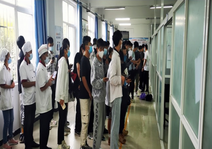 8月31日下午14时,该院积极配合学校相关安排,有序组织外省返校学生以班级为单位在校医务室进行核酸检测,同学们全程佩戴好口罩,依次核验西安市民一码通,在进行信息登记确认后,由医务人员进行专业的核酸采集操作。疫情当前,中兴学子有责任更有义务守护校园安全,为全民抗疫贡献自己的一份力量!