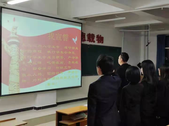 团总支书记贾晶老师带领全体学生干部宣读学生干部誓词。学生会工作人员没有居高临下的管理权,也不应有高人一等的优越感,应该从自身做起,严格要求自己,规范自己的行为,做好“领头羊”。
