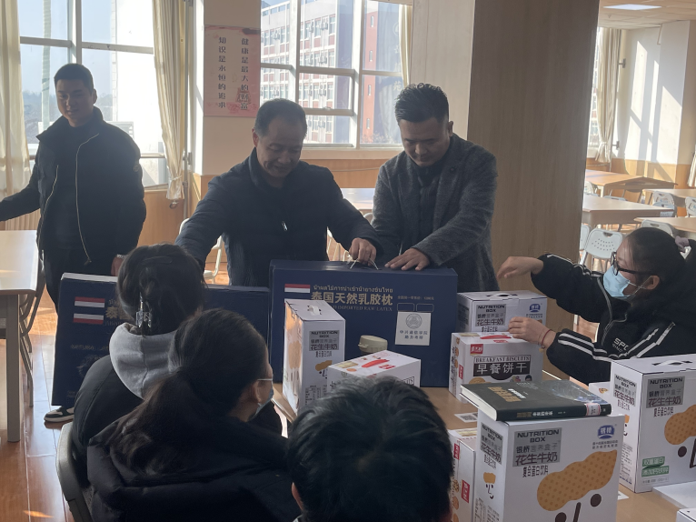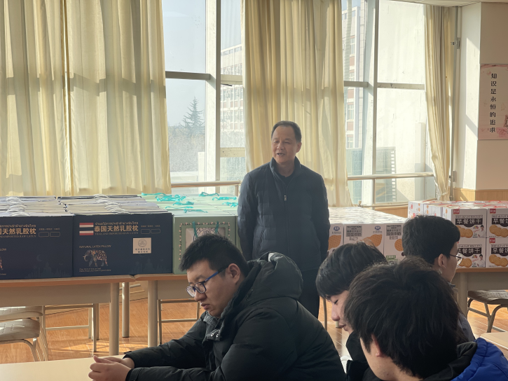活动中,李乃乾院长发表了简短的讲话,代表学院领导和老师向考研学生表示关怀与慰问。李院长说,我校始终高度重视考研工作,把考研工作作为我校“一流学生”培养的重要方面,努力营造良好的考研氛围,认真做好考研学生学习、生活等方面的服务保障工作。他对考研同学在学风建设中发挥的积极引领作用表示感谢,希望大家调整好心态,查漏补缺,做好最后的准备,预祝同学们取得好成绩。他祝愿同学们“一切真心不被辜负,一切努力终有收获。”图书馆馆长张永清、张斌书记一行也与同学们进行了亲切的交流,送上了最真挚的鼓励与祝福“成功上岸”。随后,学院领导亲自给考研同学们分发考研加油礼物,礼物除了有零食,牛奶,还有学院学管团队亲手准备的抱枕、棉被。
