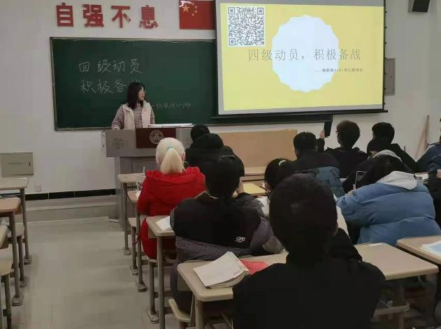 规范制度抓落实,严格管理树学。该院成立学风建设领导小组,规范学院学风建设工作实施细则。落实辅导员每周进课堂制度,全方面了解学风状况,及时杜绝“四不”现象:不旷课、不迟到,不早退,不玩手机。辅导员每周两次深入宿舍,了解学生学习生活状况,督促学生走出宿舍、走进自习室、走向操场,养成良好行为习惯。该院团总支学生会定期组织晚自习出勤人数统计,及时通报出勤结果,有效引导学生参与学风建设。学长导师团队成立学习小组,每日学习打卡,组织新生参加四级模拟考试,检验学生阶段性学习成果,树立良好学风。