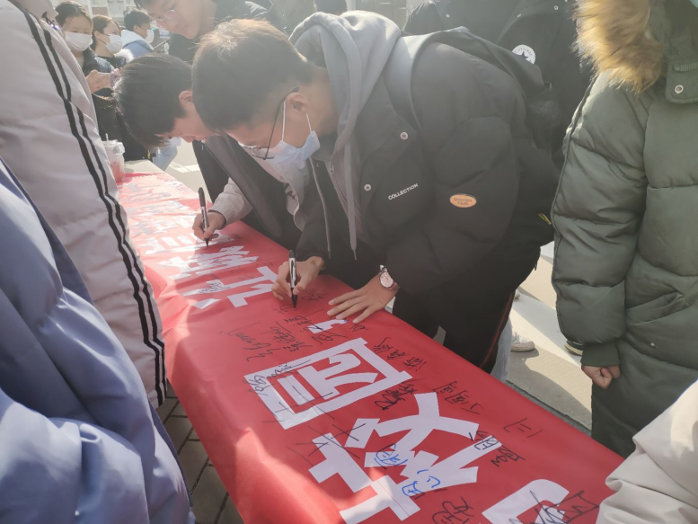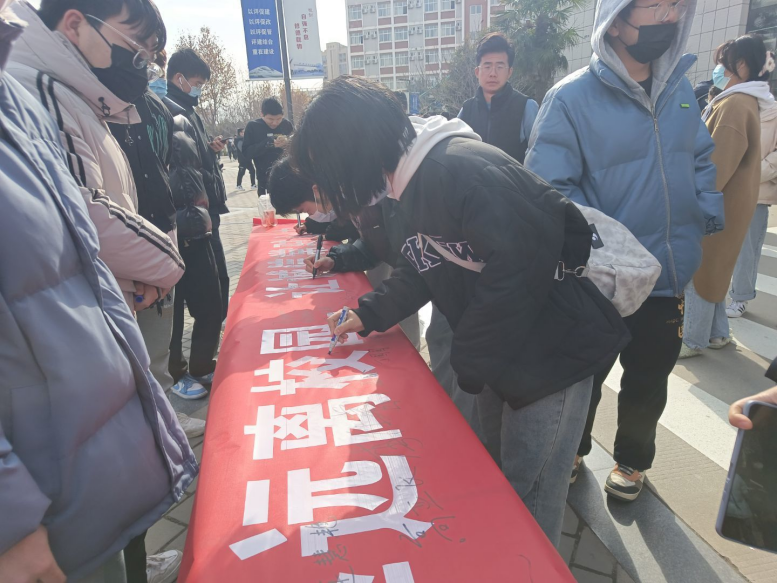 营造诚信氛围,加强诚信引导。该院于12月17日中午开展诚信考试签字活动。该院党总支书记张斌鼓励到场学生,弘扬好、传承好中华民族传统美德,认真对待每一次考试,正常发挥通过考试来检查自身不足。同学们纷纷在“让舞弊远离校园,让诚信常驻心中”的横幅上签下自己的名字,表示将认真践行、诚信考试。该院高度重视学生的诚信考试教育,充分利用QQ微信群、宣传横幅、微信公众号等宣传渠道,大力开展诚信考试宣传工作,营造风清气正的考试氛围,在全院范围内形成了诚信考试的舆论导向。