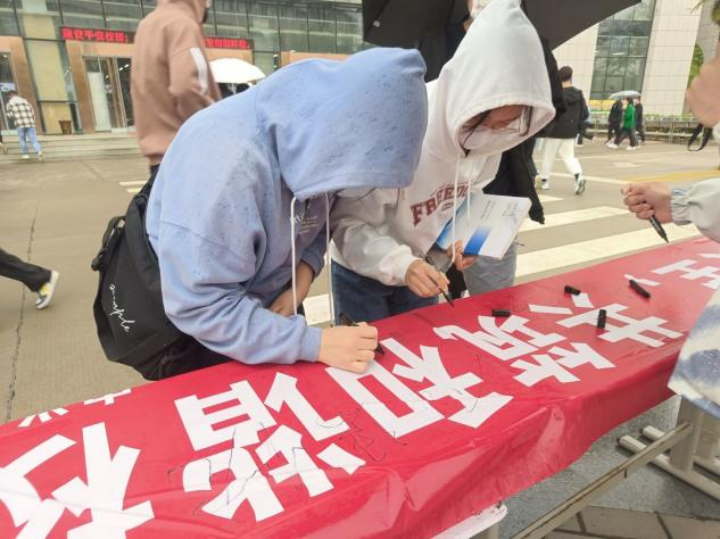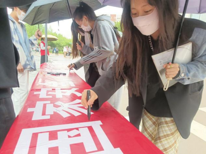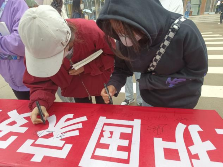 开展“维护国家安全,共筑和谐校园”主题签字活动。4月13日该院团总支学生会干部在学校西广场举行签字活动。活动中,同学们积极参与,在“维护国家安全、共筑和谐校园”横幅上坚定的签下自己的名字,表示参与校园安全建设、国家安全建设的决心。通过本次活动,提醒每一位同学重视国家安全,参与国家安全建设活动,做新时代的合格青年。