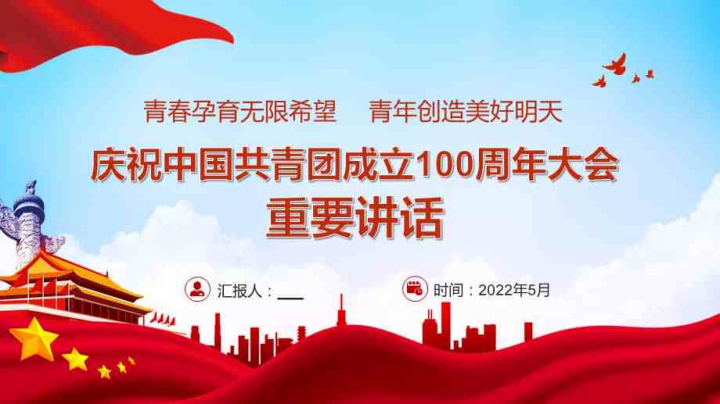100年的风雨,100年的桎梏,今天是中国共青团建团100周年,于今日上午人观看的共青团建团100年直播使我感受良多。共有团作为党的助手与后备军,承载着党的高度信任与殷切期望,使命光荣,责任重大。习近平总书记在会议上强调,做好新形势下的宣传思想工作,要自觉承担起举旗帜、聚民心、育新人、兴文化,展形象的使命任务。