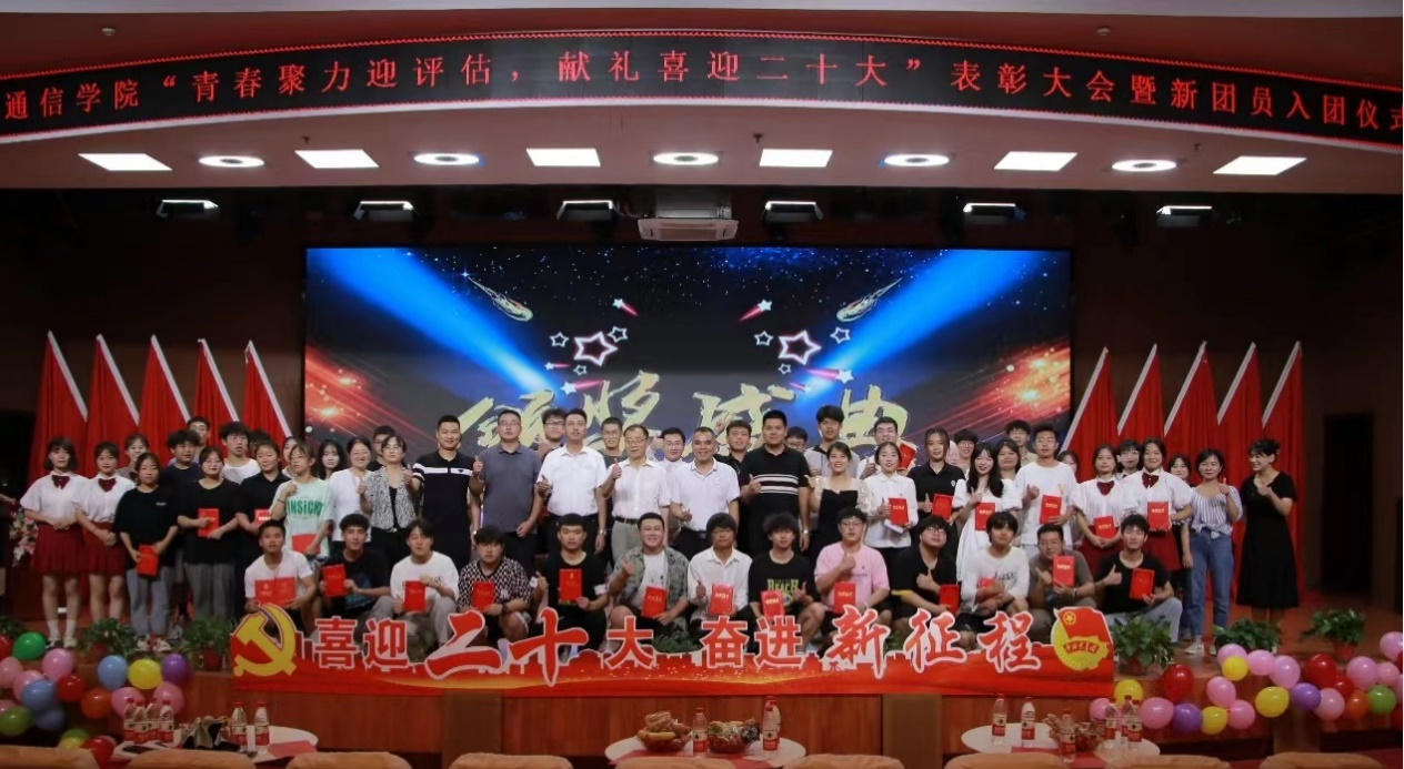 --举行“青春聚力迎评估,献礼喜迎二十大”表彰大会暨新团员入团仪式。为激励优秀青年奋发向上,培育先进典型青年,发挥出榜样的力量,该院于6月29日在学术报告厅举行“青春聚力迎评估,献礼喜迎二十大”表彰大会暨新团员入团仪式。会上,共表彰优秀学生干部、优秀志愿者等多个方面共计47名优秀青年代表,并重温入团仪式。张斌书记强调,要积极发挥志愿精神,勤学笃实,积极投身学校和社会的各项事业,为自己的人生书写更华丽的篇章。