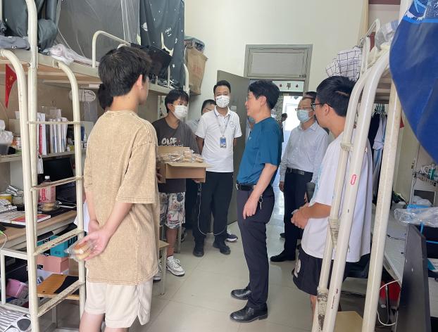 三是深入宿舍,体现人文关怀。学院院长李乃乾、党委书记兼副院长张斌一行走访新生宿舍,看望2022级新生。走访过程中,领导和新同学亲切地交谈,细心询问同学们的大学感受,鼓励同学们主动调适心理状态,尽快融入大学生活,关注同学们的生活起居,嘱咐同学们要学会学习、学会生活,互相帮助、互相理解。