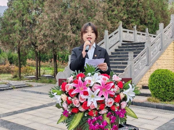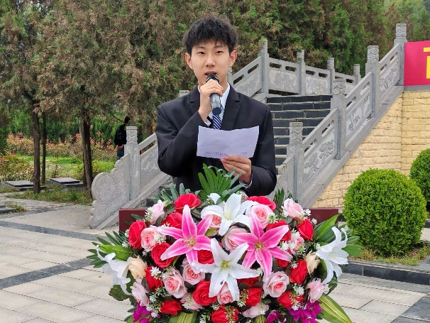 在庄严肃穆的国歌声中,全体师生列队肃立,向革命先烈默哀致敬。学生代表李亚轩表示,青年学生应追思前人,传承文化;缅怀先烈,弘扬精神,学习先烈们的英勇事迹和高尚品质,铭记他们的历史功绩和崇高精神。将革命精神,内化为我们的行动力量,激励我们在新时代中奋勇前行。