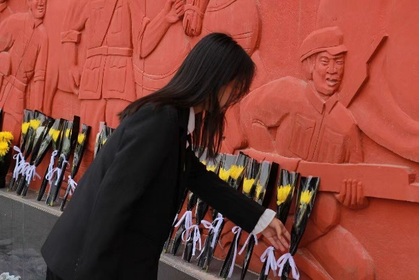 党委书记、副院长张斌向永垂不朽的英烈致以最崇高的敬意,并表达了对同学们的期望:希望青年学生以先烈为榜样,发扬他们的革命精神,坚定理想信念,勇于担当作为。牢记初心使命,不忘历史责任,以更加饱满的热情和更加坚定的信念,投身到新时代中国特色社会主义伟大事业中去。
