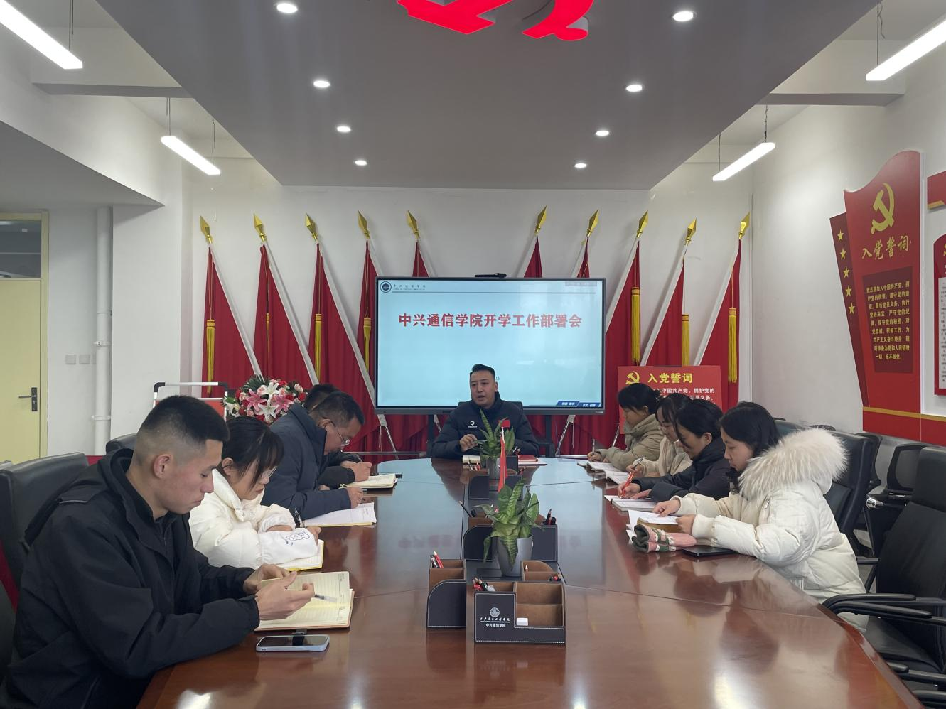 为保障春季学期开学学生管理工作平稳有序,确保新学期各项工作快速步入正轨,中兴通信学院于2024年2月23日下午在党员活动室召开2023-2024学年春季学期学生工作会议。会议由党委书记、副院长张斌主持,全体辅导员参加会议。