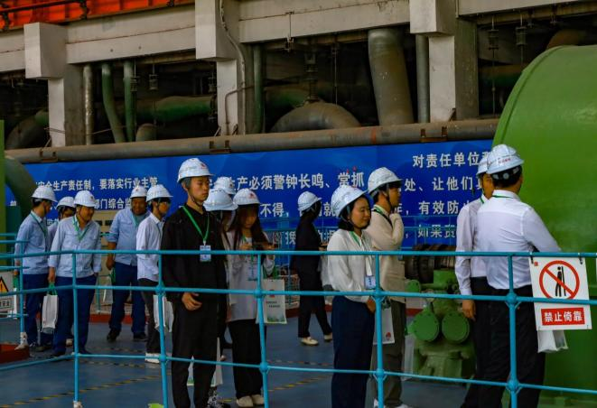 随后,在志愿者的带领下,大家参观了该厂时光梯、老物件展柜、文化长廊、老厂区汽机房、在运机组生产现场等,近距离了解企业70年艰苦奋斗的光辉历程和未来发展方向。在参观过程中,热电厂安监部专人进行了安全生产教育,确保了参观的安全性。师生们参观了老发电厂集控室主盘,亲身体验了火电机组的发电流程。此外,还参观了企业历史展览区、工业文化遗产保护和利用区域,以及在运机组生产现场,全面了解大唐西安热电厂的发展历程。