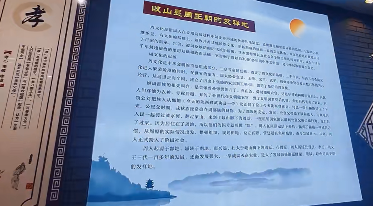的高超技艺,墙壁上展示的是周王朝的发展史和周朝各位君主的详细介绍,让同学们深刻感受到了古代先贤对于当时社会做出的巨大贡献。