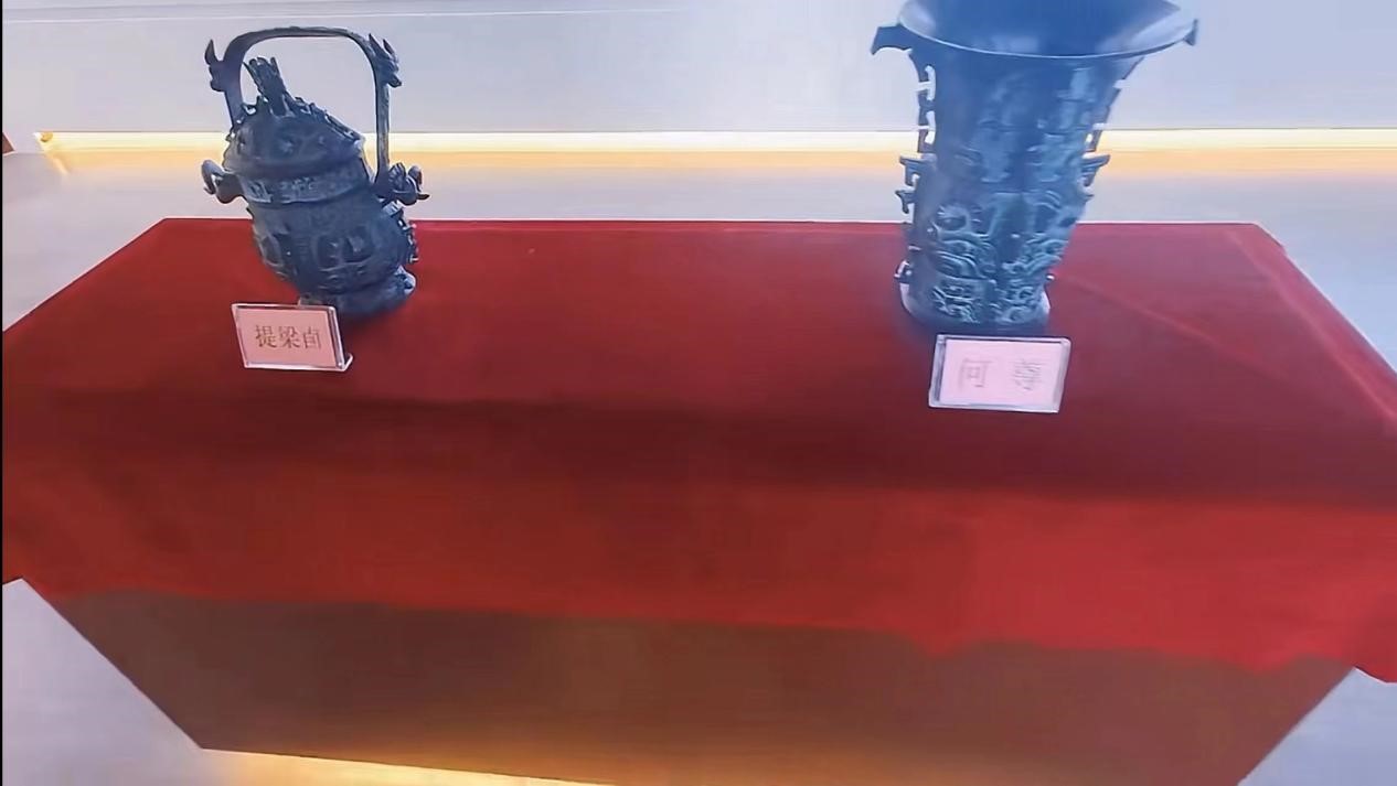 随后我们跟着讲解步入了周三王庙的两间偏房,房内陈列着周朝出土的著名青铜器的仿品,这精细的做工让我们不由得感叹古代人民