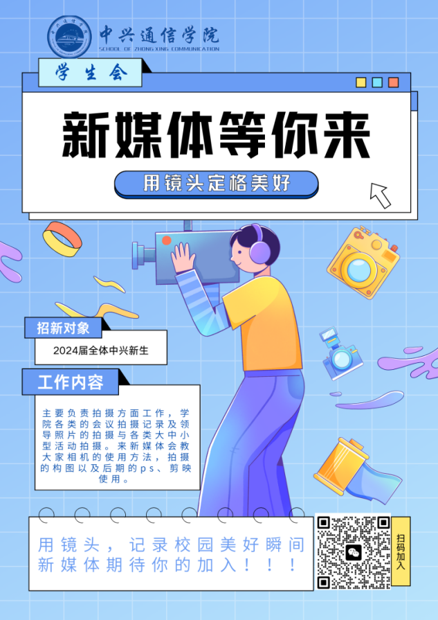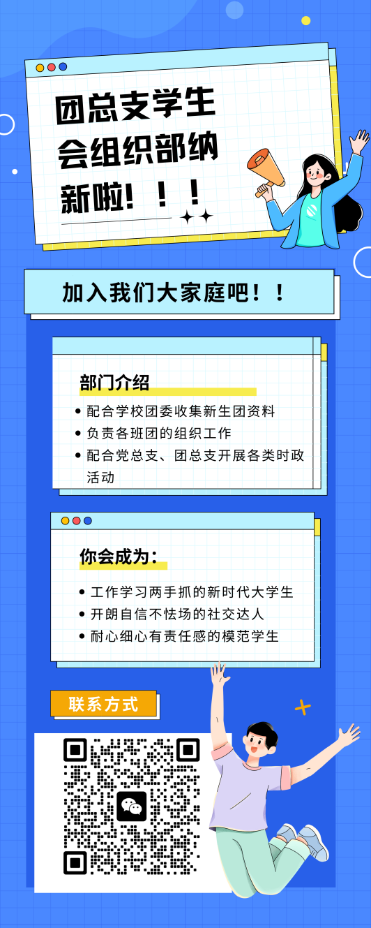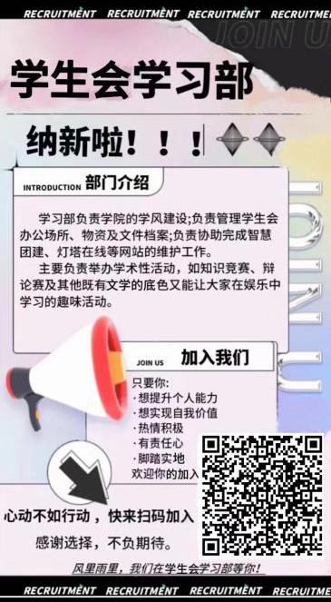 请关注学院官方公众号,扫描招新海报上二维码获得更多信息。