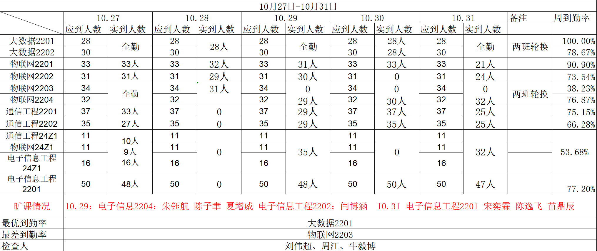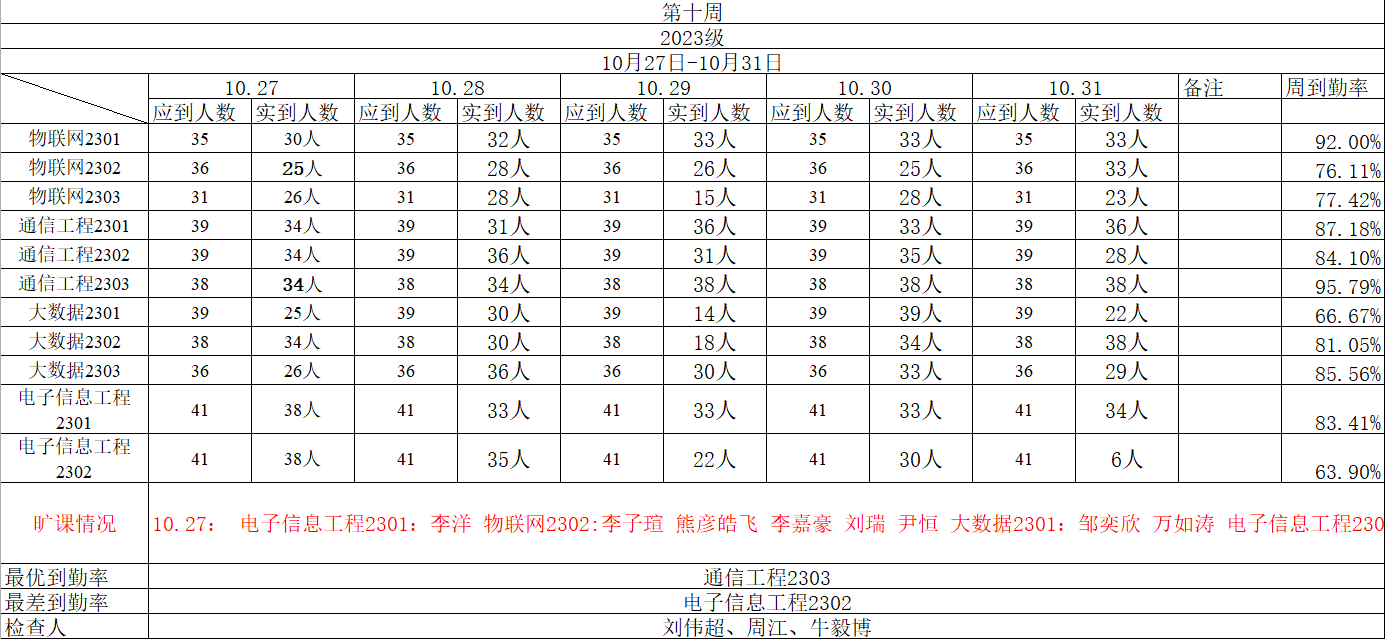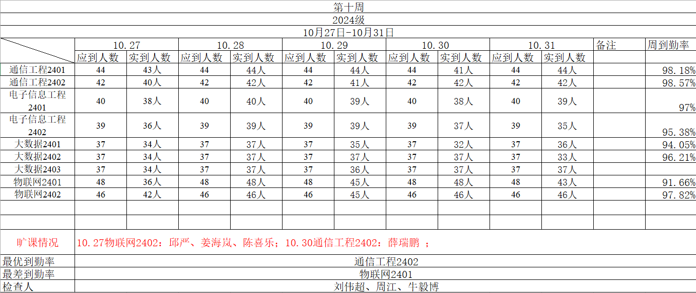 现将中兴通信学院第十周各班晚自习检查名单公布如下: