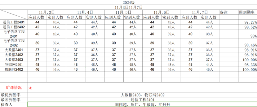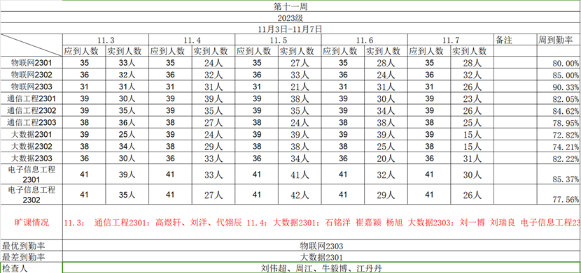 现将中兴通信学院第十一周各班晚自习检查名单公布如下: