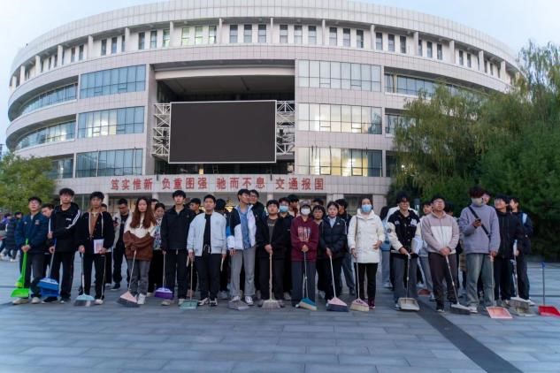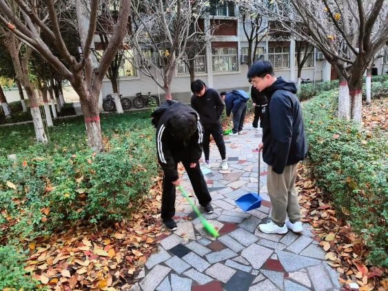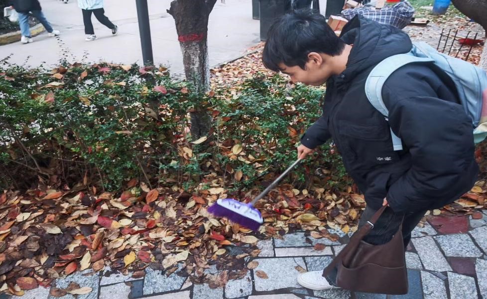 活动现场,同学们手持苕帚、簸箕等清洁工具,集合在校园公共区域。今天的寒风使落叶散落一地,这给清扫工作带来了一定的难度。但同学们没有丝毫退缩,他们分工明确,互相配合,认真地清扫着每一寸土地。经过一个多小时的努力,使原本散漫落叶的大道变得干净整洁,整个校园焕然一新。