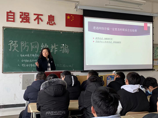 为进一步加强学生防范网络诈骗意识,12月31日中午学校人事处常务副处长朱东霞深入所联系的中兴通信学院电子信息工程2002班,与同学们一起参加 “防范电信网络诈骗”主题班会。班会由辅导员贾晶主持。