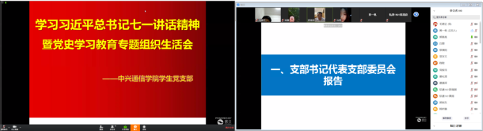 为推进党史专题学习教育往深里走、往心里走、往实里走,激励学生党员守初心、担使命,努力做到学史明理,学史增信,学史崇德,学史力行,推动党史学习教育取得实实在在的成效。中兴通信学院学生党支部于7月14日晚以线上视频会议形式开展学习习近平总书记“七一”讲话精神暨党史学习教育专题组织生活会,会议由学生党支部书记郭锦亮主持,学生党支部全体党员预备党员参加会议。